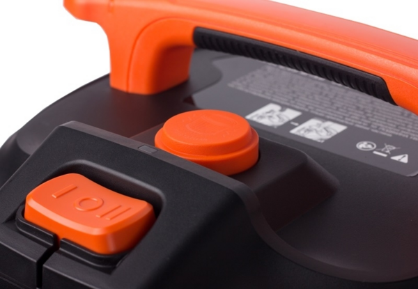 Корпус из прочного пластика с добавлением нейлона устойчив к воздействию химических растворов, не подвержен коррозии, не требует особого ухода. Мусор с острыми краями (металл, камни и т.д.) можно всасывать непосредственно в бак, не опасаясь повредить его.