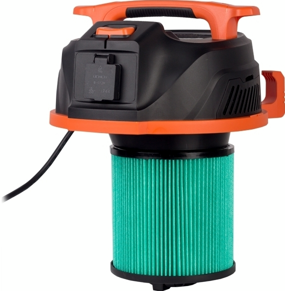 Высокая мощность пылесоса позволяет эффективно использовать его для долговременной работы в паре с электроинструментом, уборки легкого и тяжелого строительного мусора, уборки влажного мусора и воды.