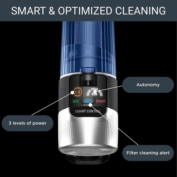Дисплей Smart Control показывает остаток заряда батареи и оповещает о необходимости очистки фильтра, а также позволяет регулировать мощность в соответствии с вашими потребностями с помощью 3 различных уровней и триггера Boost.
