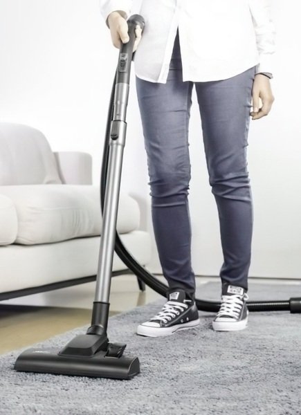 В комплектацию к технике входит телескопическая труба всасывания с удобной рукояткой и мягкой накладкой для практичной эксплуатации. Устройство предусматривает автоматическую намотку кабеля при помощи кнопки. Провод не мешает при хранении.