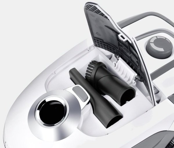 Комплектующие хранятся в самом корпусе агрегата, что позволит всегда иметь их под рукой и не терять.