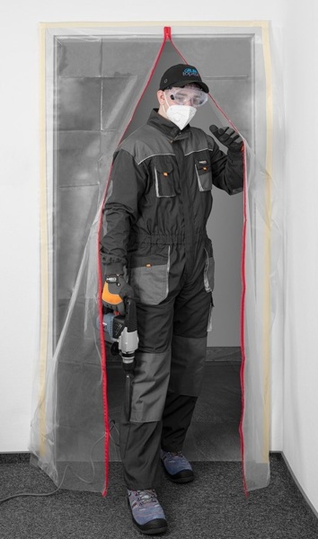 Шторка, пылезащитная для дверных проемов изготовлена из прочной, бесцветной и прозрачной полиэтиленовой пленки высокой плотности, которая устойчива к разрывам и износу. Открывающаяся часть оборудована молнией в форме вертикальной буквы "I", что обеспечивает удобный и быстрый доступ в помещение без необходимости снимать шторку. Надежное крепление осуществляется с помощью двусторонней клейкой ленты, которая легко фиксируется к большинству поверхностей и не оставляет следов после демонтажа. Благодаря отсутствию порога конструкция позволяет беспрепятственно перемещать тележки, строительные тачки или другое оборудование через дверной проем. Шторка эффективно защищает помещение от пыли, грязи и мелкого мусора, обеспечивая чистоту и безопасность интерьера во время строительных, ремонтных или отделочных работ.