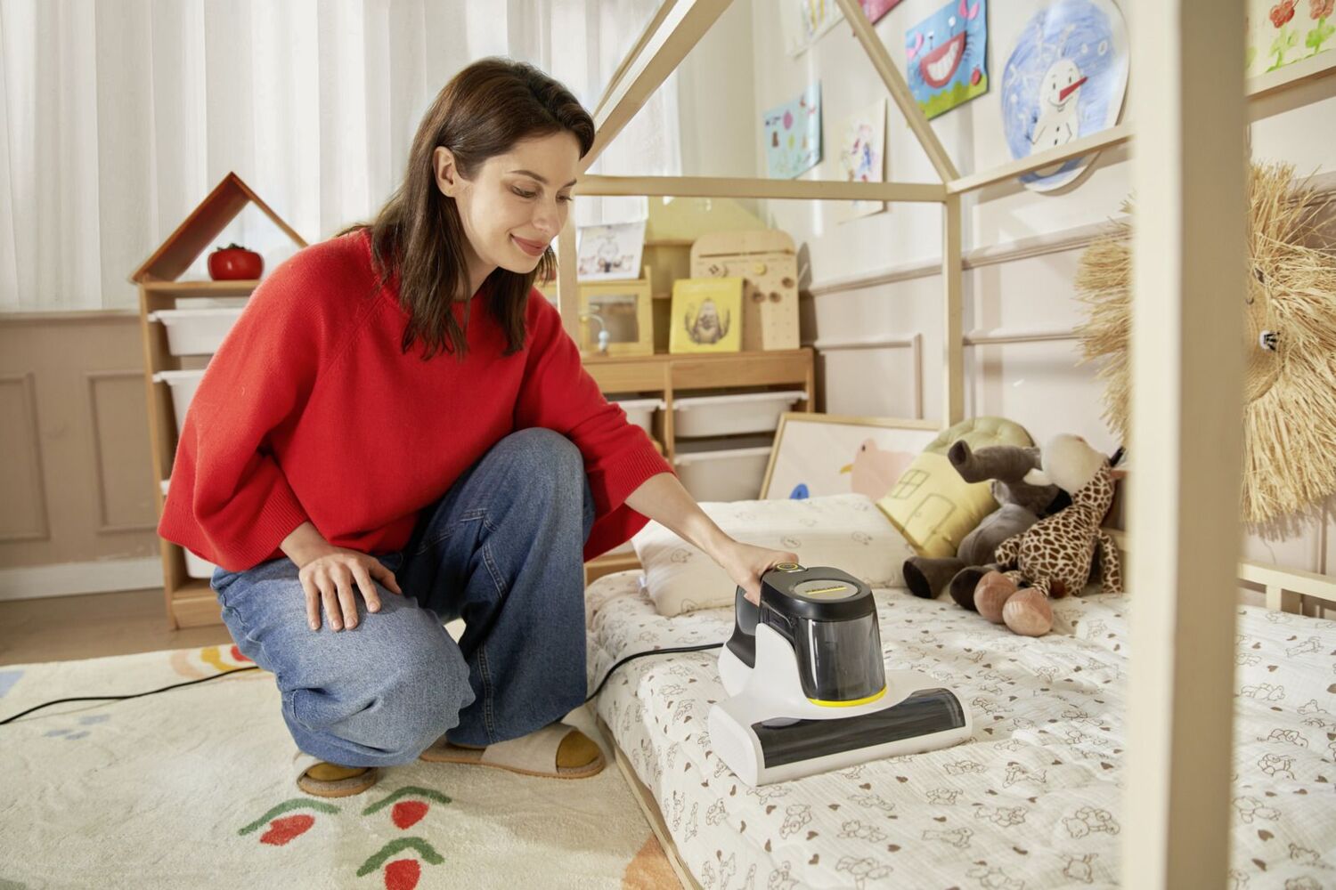 Чистый и здоровый сон возможен благодаря ручному дезинфицирующему пылесосу VCH 4 UVClean. В матрасах, подушках и другой мягкой мебели скапливаются миллионы пылевых клещей и бактерий, которые могут вызывать аллергические реакции и мешать полноценному отдыху, поэтому ограничиваться лишь видимой чистотой недостаточно. VCH 4 UVClean позволяет эффективно удалять как видимые, так и невидимые загрязнения, обеспечивая глубокую очистку матрасов и текстильных поверхностей.