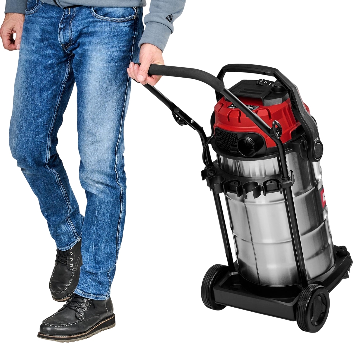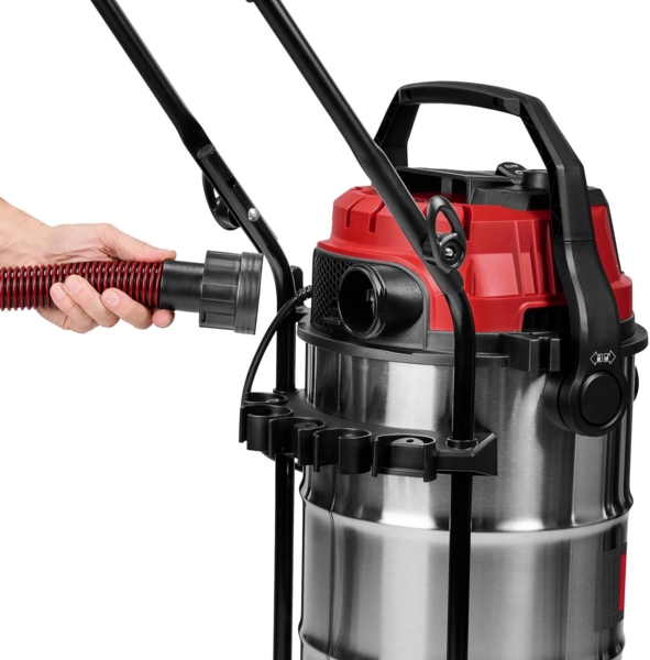 Большой контейнер для сбора из нержавеющей стали вмещает до 40 литров пыли, грязи или жидкости. Впитанную жидкость можно быстро и легко слить с помощью встроенной в корпус пробки для слива воды.