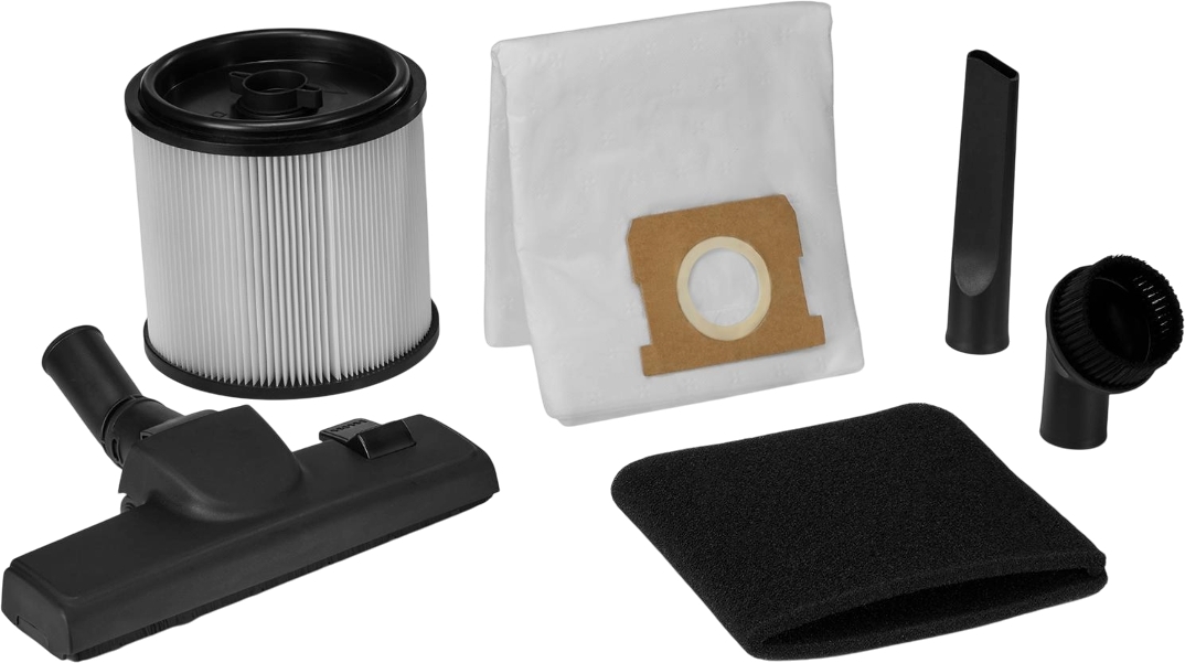 | Комплектация (возможны изменения в разных поставках) | Документация, Мешок, Насадка - 4 шт., Пылесос, Фильтр, Фильтр HEPA |