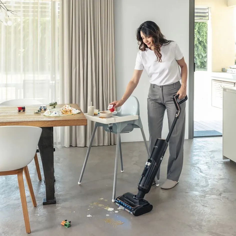 Мощное всасывание с автоматическим обнаружением грязи, справляющееся с любыми загрязнениями - благодаря постоянному потоку чистой воды для безупречной чистоты.