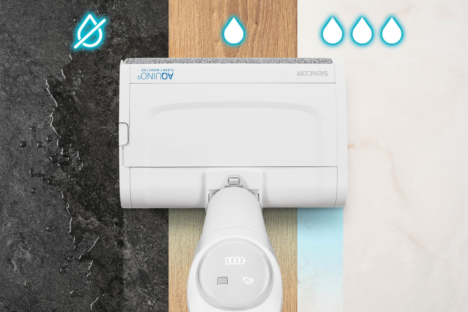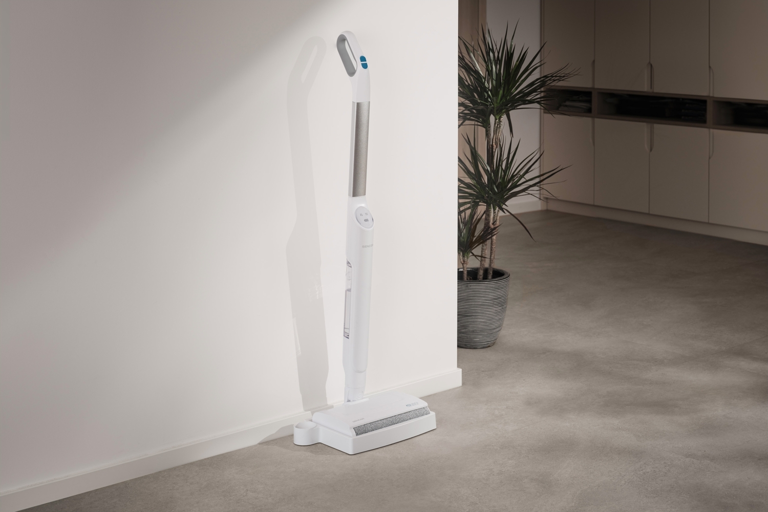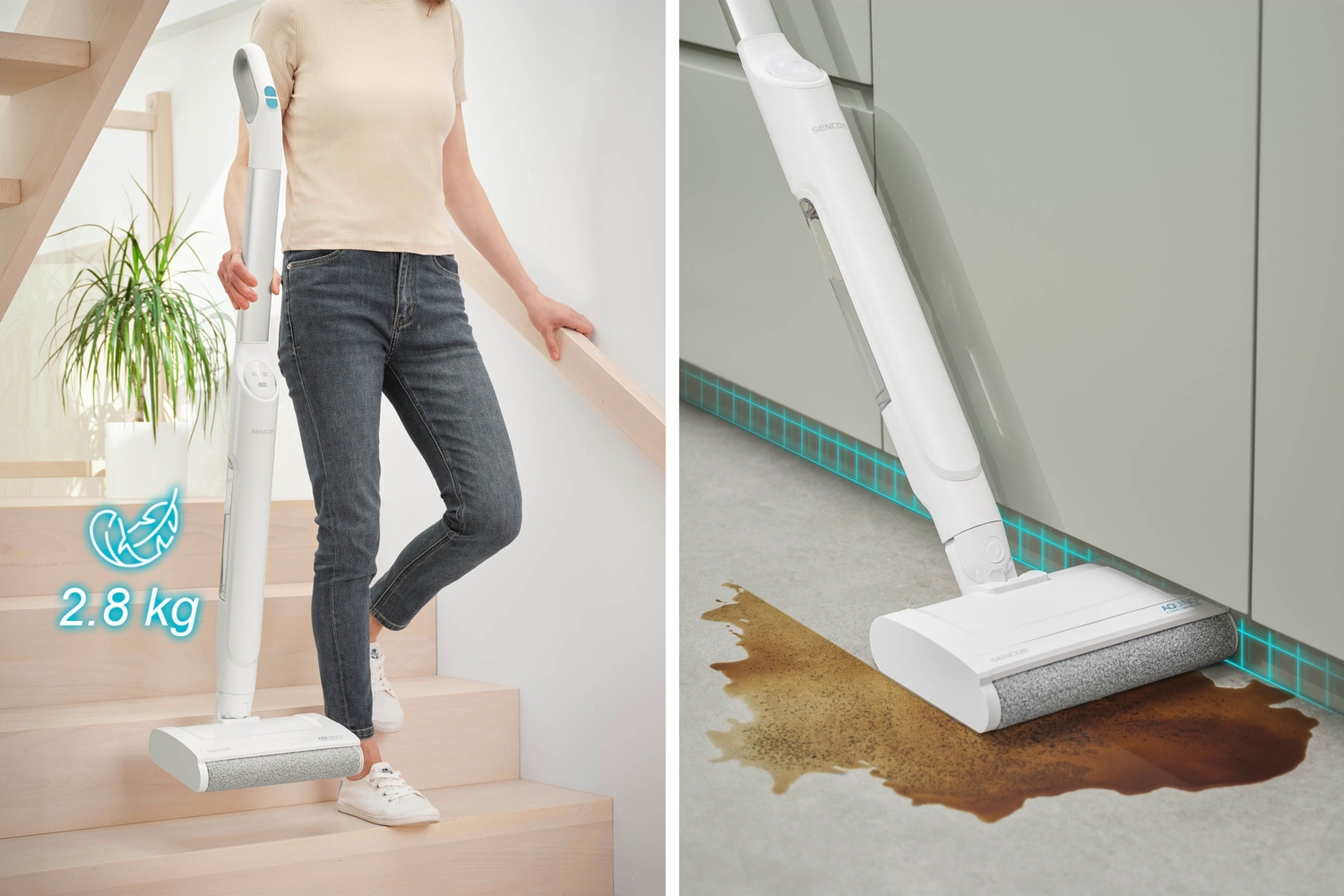 Идеально чистые и блестящие полы без усилий? Пылесос Sencor удалит грязь со всех типов твердых полов, а благодаря своей вращающейся щетке, которая постоянно смачивается в чистой воде, ваш пол будет сиять. Устройство легко справляется с узкими пространствами у стен или под мебелью, а легкая конструкция делает использование простым и комфортным. Кроме того, вам не нужно спешить с уборкой - батарея работает до 40 минут.