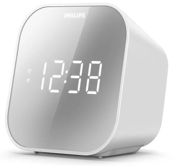 На этих FM-радиочасах с будильником легко смотреть время благодаря большим цифрам на зеркальном дисплее с возможностью регулировки яркости. Простое управление позволяет настраивать будильник, громкость и радиостанции.