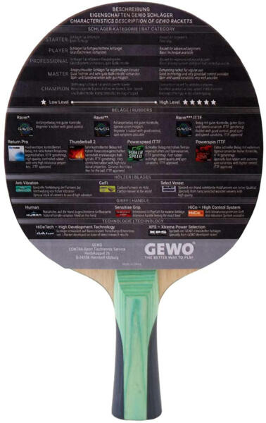 Карбоновое плетение, интегрированное в ракетку, обеспечивает непревзойденную динамику и стабильно высокую производительность по всей поверхности ракетки. Игровые характеристики резиновых накладок Thunderball 2, одобренных ITTF, находятся на исключительно высоком уровне и гарантируют удовольствие от игры с максимальным оборотом и скоростью.