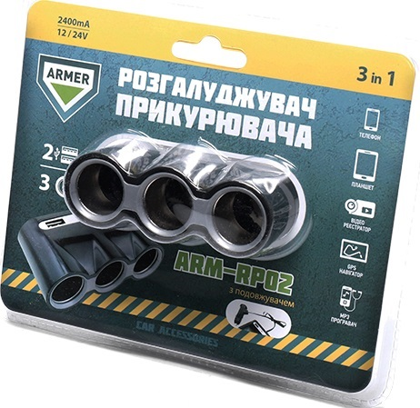 - Разветвитель прикуривателя Armer 3в1 2 USB 2400mA 12/24V (ARM-RP02) (49051233348)