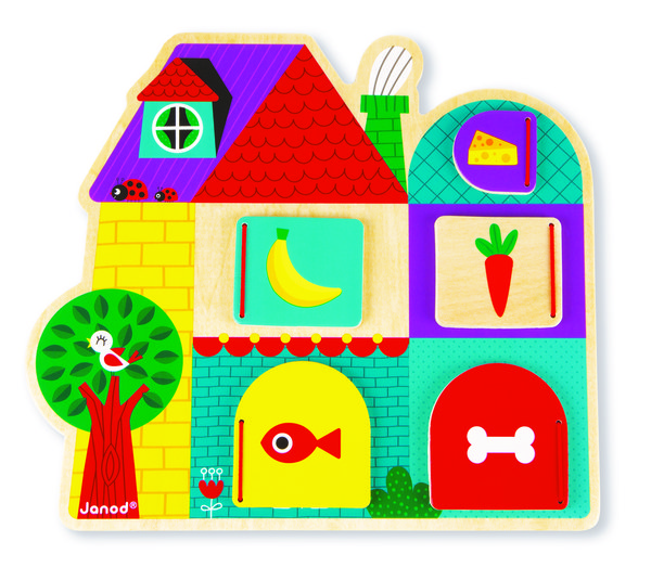 Janod Кто за дверью покупали годовалому малышу по совету подруги-педагога. Нашли игрушку на этом сайте, дешевле, чем в магазинах моего города. Такая игрушка в первую очередь развивает восприятие цвета ребенком , так как на пазле есть много ярких элементов для изучения. Так же такая игрушка развивает мелкую моторику, именно то, что надо детям вплоть до среднего школьного возраста. Не страшно за безопасность ребенка, так как выполнена игрушка из дерева, запаха краски или лака, а тем более пластика из коробки не было слышно. Забавна сама задумка - за дверью тот зверь, который кушает ту еду, что на дверце. Открывая двери малыш находит зверушку