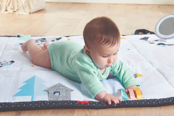Большой развивающий коврик Tiny Love Ночная поляна обеспечит комфорт и безопасность ребенка во время игры. Мягкий текстиль, интерактивные элементы, а также интересные изображения создают комфортное пространство для моторных и сенсорных ощущений ребенка, который будет находиться на спине или животе. Стимулируя различные чувства, коврик позволяет ребенку тренировать координацию, равновесие и осанку, а также учит контролировать и развивать движения своего тела. Большое игровое пространство задержит внимание ребенка на долгое время, а элементы различных текстур будут формировать тактильные навыки и развивать мелкую моторику. Регулируемое зеркало привлечет внимание ребенка и поможет продлить время, которое ребенок проводит лежа на животике. Наблюдая за собственным отражением в зеркале, ребенок развивает внимание и визуальное восприятие. Черно-белый дизайн ковра обеспечит значительную стимуляцию зрения и сенсорных ощущений ребенка от рождения. Каждый продукт бренда Tiny Love был создан с учетом семи элементов развития ребенка, предоставляя родителям возможность ускорить развитие ребенка не принуждая его.