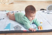 - 5+ месяцев: познание. Пока ребенок сидит, он наслаждается уютом места, знакомится с различными элементами коврика и теми, что за его пределами. Используйте образы животных, чтобы рассказывать интересные истории. Эта игра будет привлекать ребенка к развитию лексики.