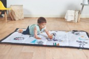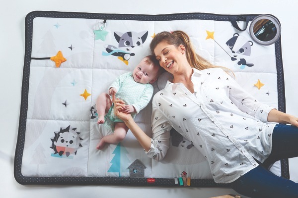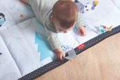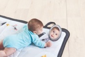 - 0+ месяцев: Эмоциональное и социальное развитие. С самых первых дней коврик может стать местом для проведения совместного времени с малышом. Ложитесь рядом с ребенком, обнимайте его, играйте с ним. Наслаждайтесь возможностью познакомиться со своим ребенком. Общение - отличный способ успокоить малыша и поддержать его эмоциональное развитие.