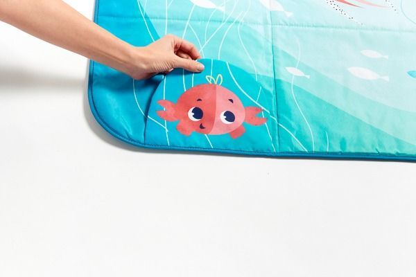 Большой развивающий коврик Tiny Love Сокровище океана обеспечит комфорт и безопасность ребенка во время игры. Мягкий текстиль, интерактивные элементы, а также яркие изображения создают комфортное пространство для моторных и сенсорных ощущений ребенка, который будет находиться на спине или животе. Стимулируя различные чувства, коврик позволяет ребенку тренировать координацию, равновесие и осанку, а также учит контролировать и развивать движения своего тела. Большое игровое пространство задержит внимание ребенка на долгое время, а элементы различных текстур будут формировать тактильные навыки и развивать мелкую моторику.