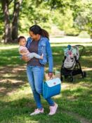- Легко складывается и фиксируется в сложенном положении с помощью липучки, имеет ручку для переноски.
