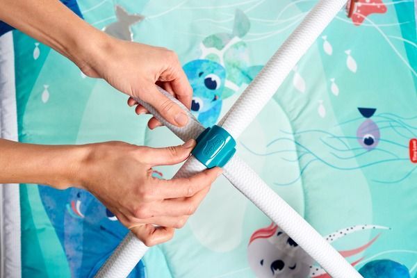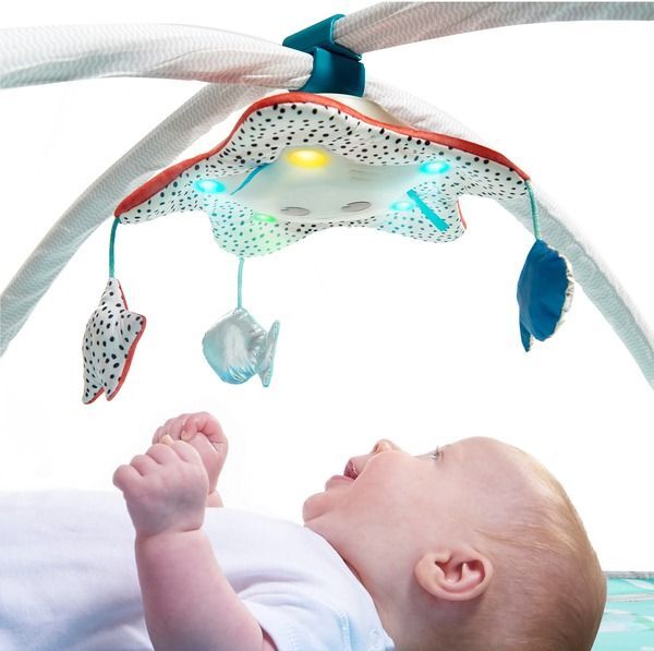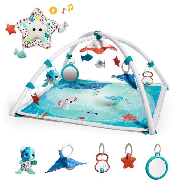 | Комплектация | Свето-музыкальная морская звездочка, черепашка погремушка, раздвижные дуги, погремушка, безопасное зеркальце, шуршащие элементы, объемные элементы для игр в прятки, шуршащий скат |