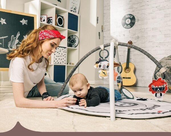 Этот коврик идеально подходит для гармоничного развития малыша в первые месяцы жизни. Уникальный монохромный дизайн способствует стимуляции зрительного восприятия, а разнообразные интерактивные элементы помогают развивать моторику, сенсорные навыки и координацию.
