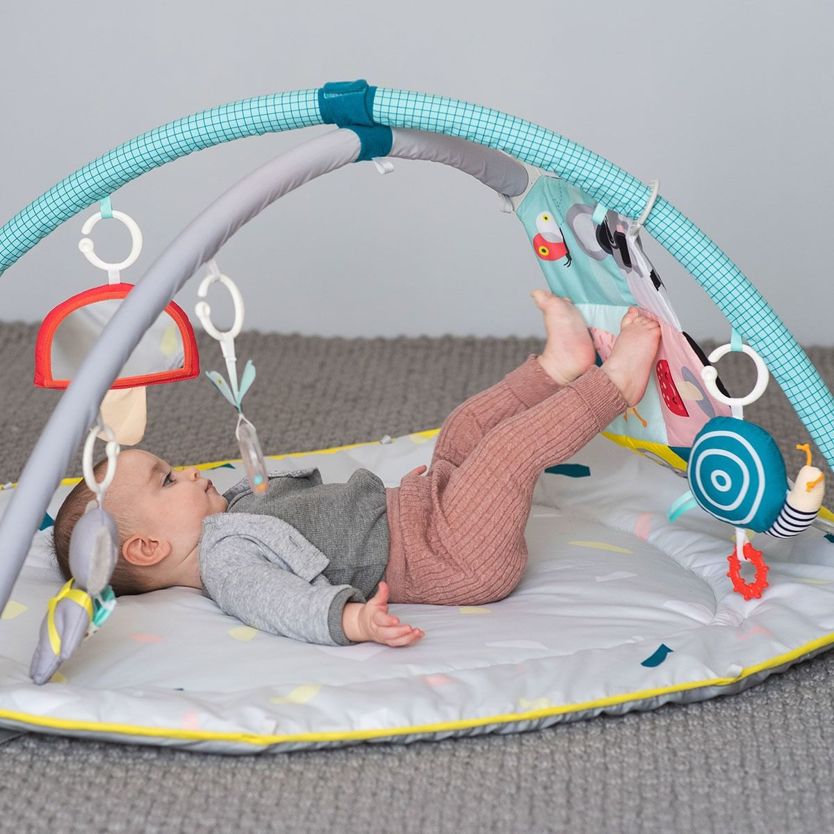 Развивающий музыкальный коврик с дугами создаст уютный уголок для игр и развития малыша. Мягкий коврик оснащен уникальным двусторонним сенсорным центром 4-в-1, который стимулирует малыша лежать в 4 различных положениях и развивает различные навыки в каждом из них. Размещайте малыша в разных положениях - это очень ценно для его двигательного, когнитивного и сенсорного развития.