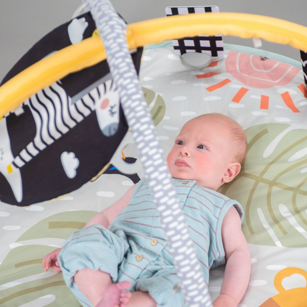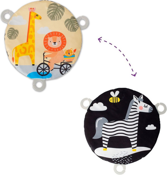Цвета, текстуры, музыка и свет, контрастные черно-белые элементы стимулируют органы чувств малышей с раннего возраста. Большое разнообразие функций и игрушек вдохновит вашего ребенка практиковать различные навыки. Использование черно-белых карточек вместе с зеркалом-черепашкой, прикрепленным к коврику с помощью уникальных зажимов, будет побуждать ребенка проводить больше времени на животике. Актуально в период от 0 до 3 месяцев.
