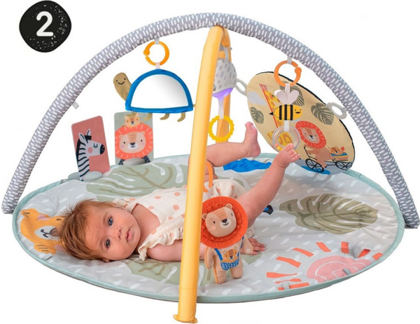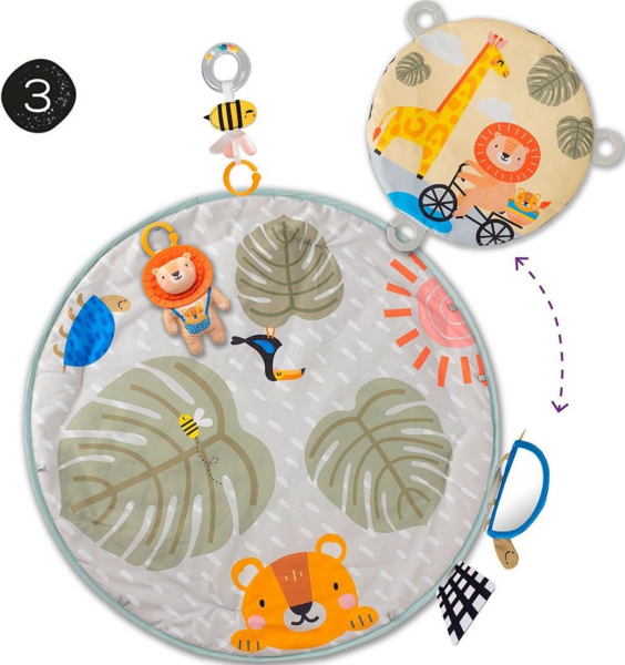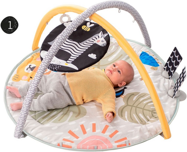 Развивающий музыкальный коврик с дугами коллекции "Саванна" - Приключения на 360° - незаменимый помощник современных родителей. Развиваться и познавать мир легче с новым стильным ковриком, который содержит 20 различных активностей. Коврик изготовлен из качественных материалов и чрезвычайно мягкой ткани для максимальной безопасности и комфорта ребенка. Имеет уникальное маленькое круглое одеяло, которое сочетается с элементами набора несколькими способами: его можно разместить вверху на дугах, внизу на дугах или внизу на коврике. Это побуждает ребенка практиковать различные положения тела и взаимодействовать с игрушками. Для работы нужны две батарейки ААА (не входят в комплект).