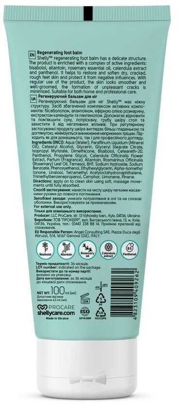 - Регенерирующий бальзам для ног Shelly с бисабололом, аллантоином и маслом розмарина 100 мл