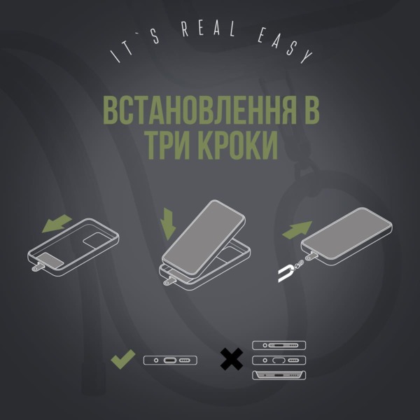 Этот ремешок для смартфона изготовлен из высококачественных материалов, обеспечивающих прочность и долговечность аксессуара. Ваш смартфон будет хорошо защищен и надежно закреплен. Дополнительно к ремешку идет холдер, который крепится к ремешку. Он размещается под смартфоном в чехле, а крепеж выводится из отверстия под зарядное устройство.