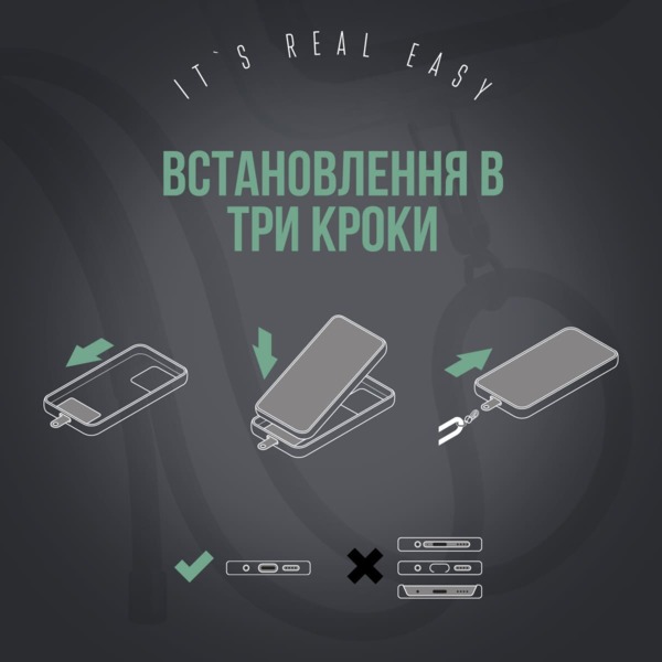 Этот ремешок для смартфона изготовлен из высококачественных материалов, обеспечивающих прочность и долговечность аксессуара. Ваш смартфон будет хорошо защищен и надежно закреплен. Дополнительно к ремешку идет холдер, который крепится к ремешку. Он размещается под смартфоном в чехле, а крепеж выводится из отверстия под зарядное устройство.