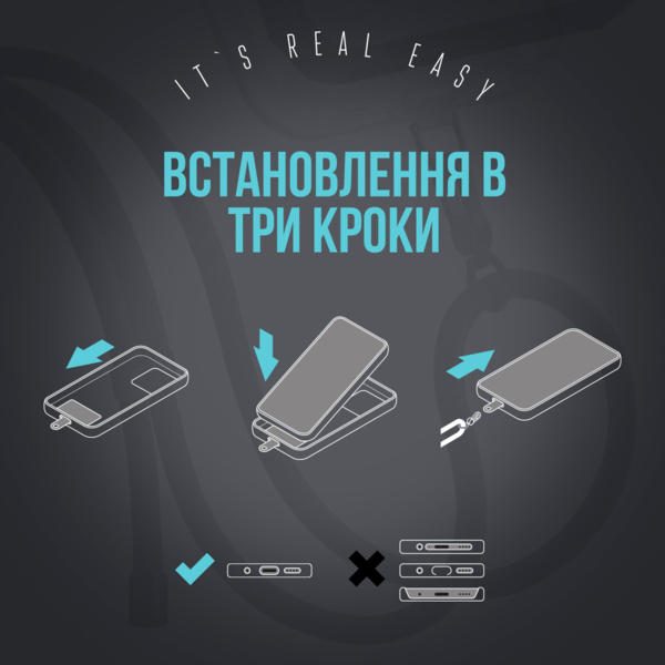 Этот ремешок для смартфона изготовлен из высококачественных материалов, обеспечивающих прочность и долговечность аксессуара. Ваш смартфон будет хорошо защищен и надежно закреплен. Дополнительно к ремешку идет холдер, который крепится к ремешку. Он размещается под смартфоном в чехле, а крепеж выводится из отверстия под зарядное устройство.