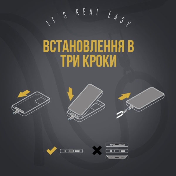 Этот ремешок для смартфона изготовлен из высококачественных материалов, обеспечивающих прочность и долговечность аксессуара. Ваш смартфон будет хорошо защищен и надежно закреплен. Дополнительно к ремешку идет холдер, который крепится к ремешку. Он размещается под смартфоном в чехле, а крепеж выводится из отверстия под зарядное устройство.
