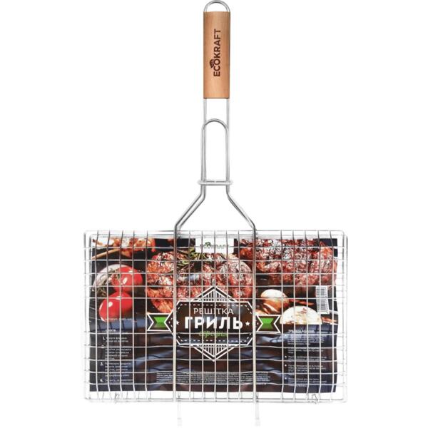 Решетка-гриль Ecokraft с деревянной ручкой средняя 22x34см (ZDBQ-40G)