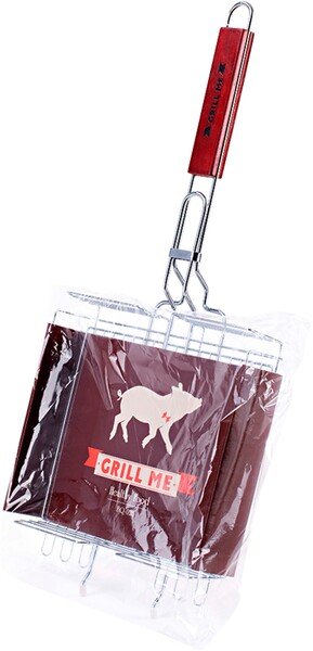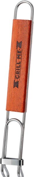 Несомненным удобством в решетке GRILL ME считаю удобную деревянную ручку, которая абсолютно не нагревается в процессе приготовления пищи на костре. Понравилось, что сама решетка имеет частое переплетение. Благодаря этому можно не только большие куски мяса жарить, но и грибы, они не выпадают. Удобно что есть фиксатор, продукты остаются на месте при переворачивании.