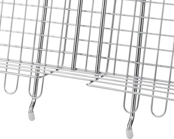 Решетка из недорогих, но совершенно не похожа на своих хлипких собратьев. Неплохой металл, решетка не прогибается вне зависимости от веса положенного на нее мяса. Ручка широкая, крепкая, опять же не гнется и не нагревается. Даже не ожидали. Красиво блестит, эффектно смотрится на пикниках. Немного необычная форма, чуть шире стандартных, зато имеем возможность положить пару лишних кусочков, очень удобно. Фиксатор не слетает, достаточно надежный. Рады удачной покупке.
