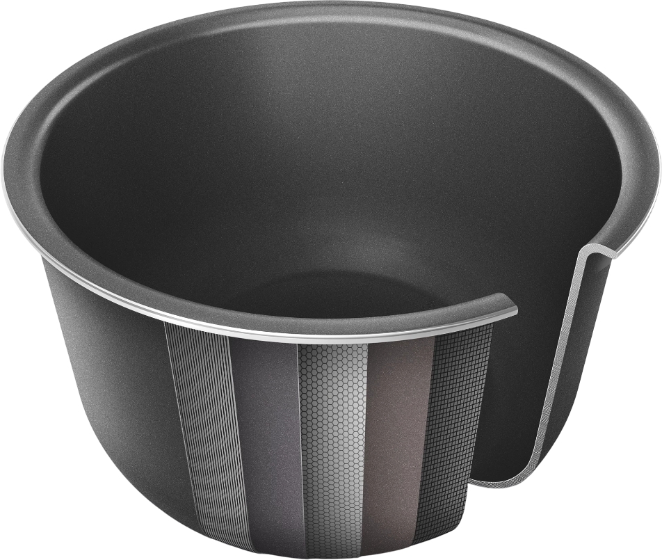Емкость для приготовления из 5-слойного алюминиевого сплава с антипригарным покрытием обладает повышенной износостойкостью.