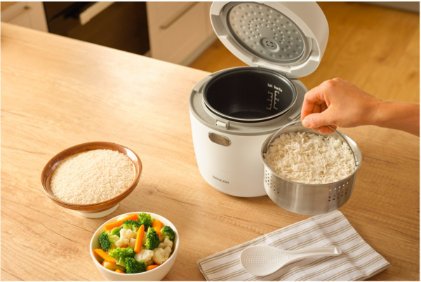 Рис получается идеально рассыпчатым, а не слипшимся, и это всего за 30 минут. У неё есть разные режимы, так что я могу готовить не только белый рис, но и коричневый, а иногда даже киноа. В использовании простая, просто засыпаешь рис, добавляешь воды и нажимаешь кнопку — всё! А когда рис готов, она автоматически переключается на подогрев, так что можно не переживать, если задержишься на кухне.