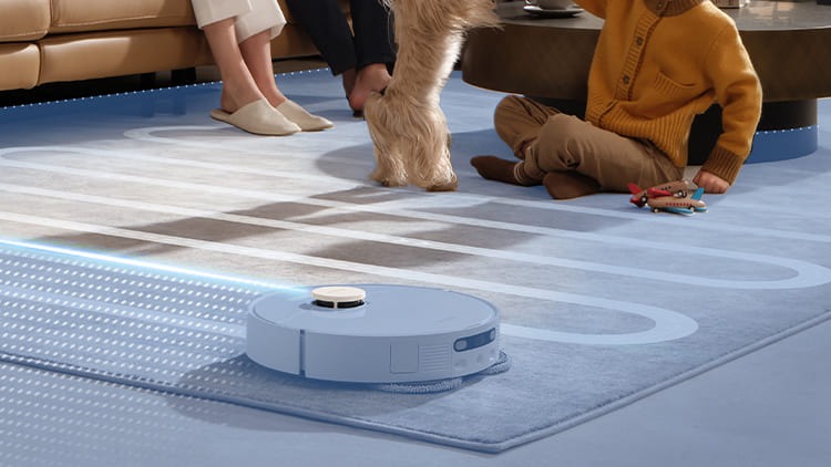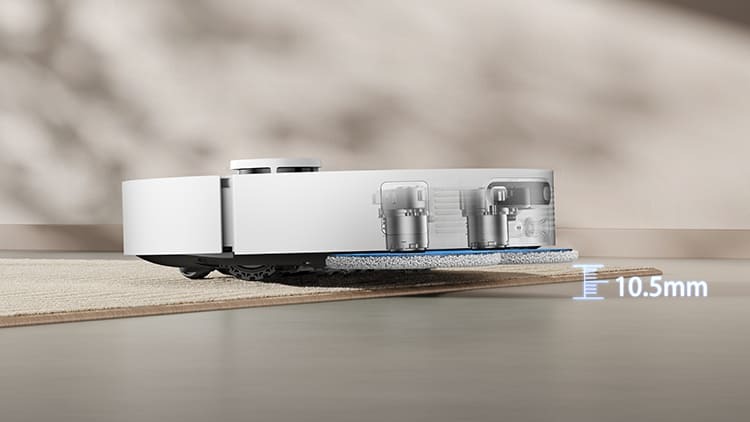 В пылесосе Dreame реализована функция ультразвукового распознавания ковров, которая автоматически усиливает всасывание на коврах и удаляет грязь для глубокой очистки. Кроме того, швабры робота поднимаются до 10,5 мм на коврах с низким ворсом, сохраняя их сухими и повышая эффективность очистки.