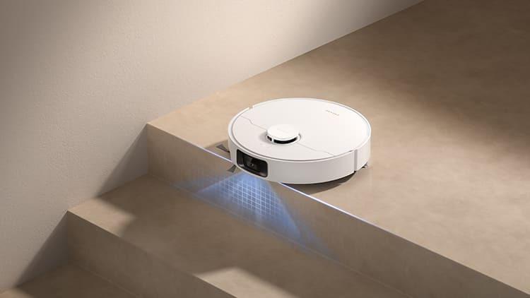 Робот-пылесос Dreame D20 Pro имеет встроенный современный датчик, который легко определяет перепад высоты на своем пути и защищает робота от падений.