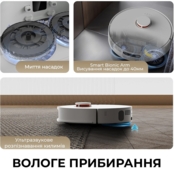 | Комплектация (возможны изменения в разных поставках) | Боковая щетка, Док-станция зарядки и самоочистки, Документация, Инструмент для чистки, Мешок для пыли, Модуль для влажной уборки - 2 шт., Насадка из микрофибры - 2 шт., Основная щетка, Пылесборник, Робот-пылесос, Удлинительная пластина рампы, Фильтр |