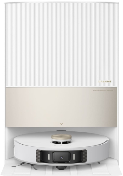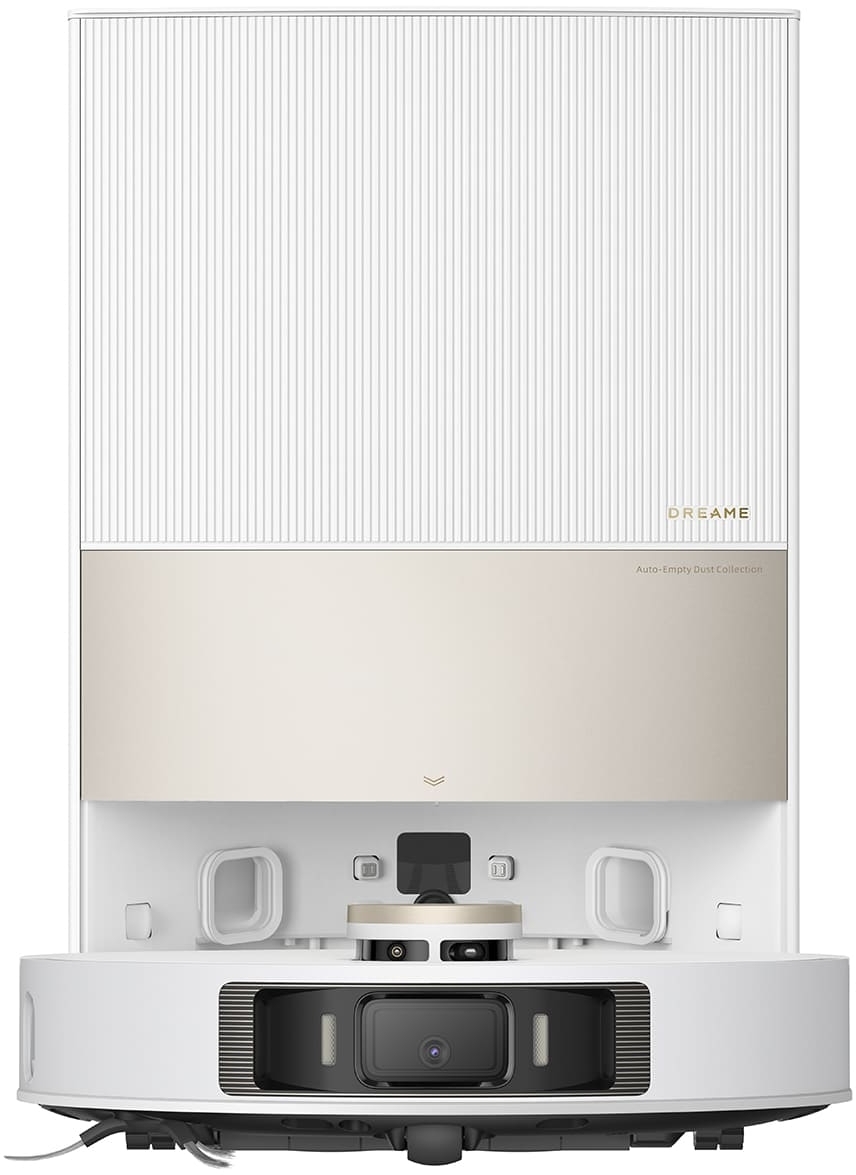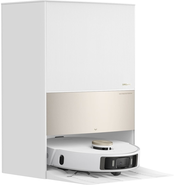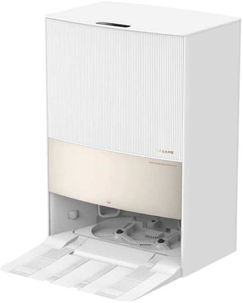 В комплекте с Dreame L20 Ultra входит специальная автоматическая станция для обслуживания, которая обеспечивает возможность не только чистить контейнер для мусора, но и сушить промытые салфетки для мытья пола, убирать мусор, собранный при уборке. Автовыгрузка собранной пыли и мусора выполняется по технологии DualBoost v.2.0.