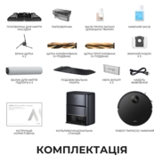 | Комплектация (возможны изменения в разных поставках) | Боковая щётка - 2 шт., Валик для влажной уборки - 3 шт., Док-станция зарядки и самоочистки, Документация, Кабель питания, Моющее средство - 2 шт., Основная щетка - 2 шт., Платформа для мытья насадок, Пылесборник, Робот-пылесос, Сменный мешок - 3 шт., Удлинительная пластина рампы, Фильтр - 3 шт. |
