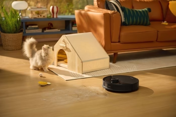 Благодаря структурированному свету, усовершенствованная система пылесоса без труда обнаруживает препятствия и ориентируется на них, даже в захламленных помещениях с разбросанными по полу вещами.