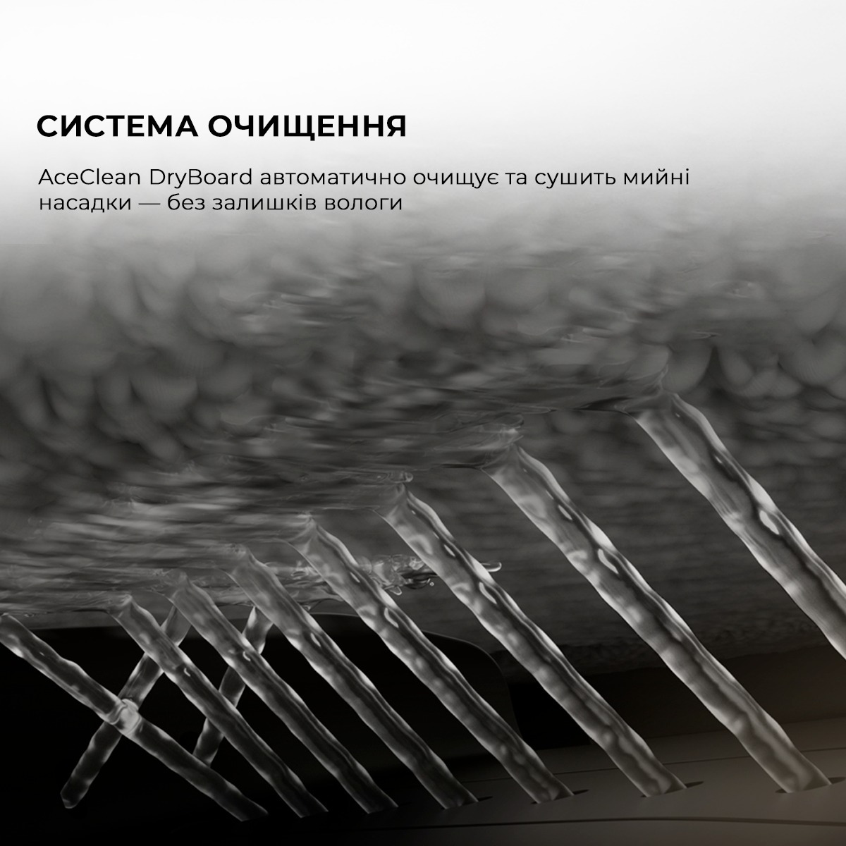 Технология AceClean DryBoard позволяет хранить моющие насадки и доску для чистки без ручного вмешательства. После самоочистки моющих насадок доска для мытья остается сухой, сводя к минимуму остатки влаги. Это сохраняет систему очистки свежей и готовой к следующей уборке.