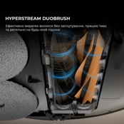 HyperStream DuoBrush с двумя щетками разработана для 100% устранения спутанных волос. Она легко справится с прядями длиной до 30 см. Мощное всасывание в сочетании с резиновой щеткой с щетиной и резиновой щеткой из TPU обеспечивает эффективное удаление волос со всех видов полов, сводя к минимуму шум и каждый раз обеспечивая тщательную и тихую уборку.