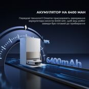 L20 Ultra Complete — первый круглый робот-пылесос, который идеально моет пол по периметру комнаты. Как только пылесос приступает к влажной уборке, становится очевидно: этот робот — изобретатель. Одна из его боковых моющих подушечек выдвигается на 2 мм от корпуса, чтобы захватить грязь по краям комнаты и безупречно помыть весь пол. Новая система DuoScrub с двумя ротационными швабрами создана для того, чтобы ваш пол сиял. Круглые микрофибровые насадки быстро вращаются и сильно давят на поверхность, а на них порционно подается вода. Теперь от разлитой жидкости или липкого пятна соуса не останется следов. Ведь сила нажима увеличивается, когда датчики замечают сложную грязь. Робот-пылесос убирает автономно благодаря аккумулятору на 6400 мАч, а еще поддерживает быструю зарядку. На полную зарядку уходит 4,5 часа.