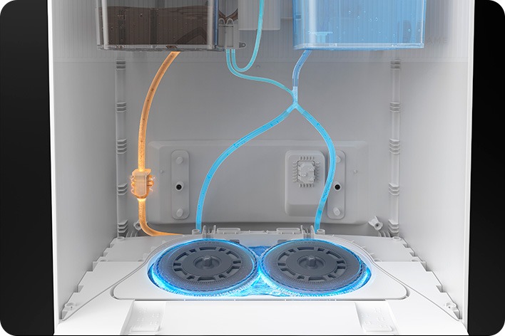 Забудьте об уборке на несколько месяцев. Пылесборник L20 Ultra Complete рассчитан на 3,2 литра и его хватает на 75 дней. После этого просто замените пылевой мешок на новый. Все остальное станция самоочистки сделает за вас. Она промоет насадки подогретой водой и просушит их горячим воздухом. Робот выдует собранный мусор через систему DualBoos 2.0, а также пополнит запасы воды для влажной уборки. Вода подается из встроенного резервуара на 4,5 литра, а одного наполнения хватает для уборки площади до 985 м². Чтобы сделать пол безупречно чистым и свежим, вы можете добавить моющее средство в отдельный отсек станции.