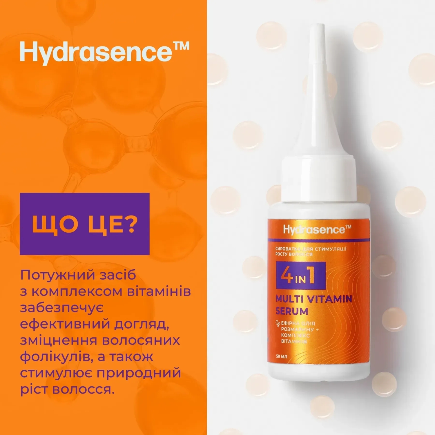 - Для более эффективного действия попробуйте в комплексе со спреем-стимулятором роста волос 3в1 Hydrasence.