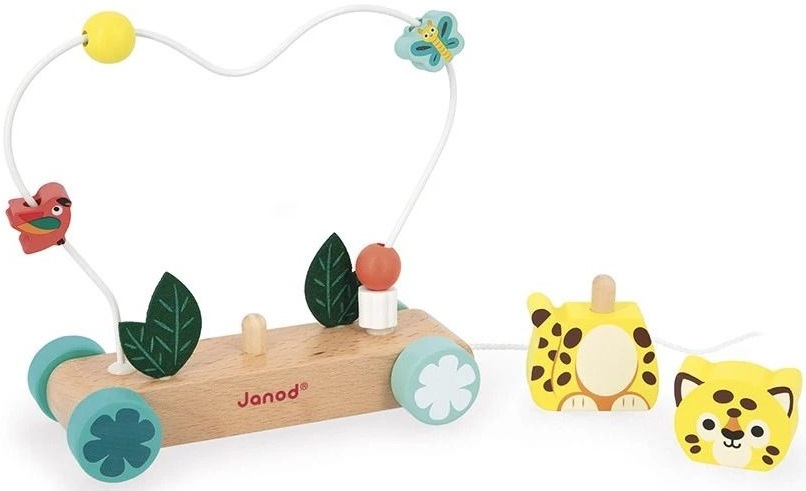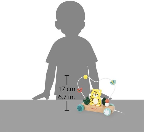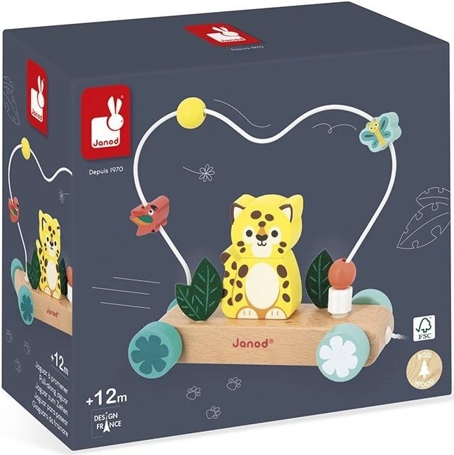 Маленький ягуар на прогулке! С помощью этой деревянной игрушки - ходунков малыш сможет развивать свои двигательные навыки, начиная с 12 месяцев. Идеальные для сопровождения первых шагов, ходунки с ягуаром легко брать с собой повсюду благодаря шнурку длиной 50 см. Он полон открытий для малышей! Ягуар поставляется в виде игрушки, состоящей из двух частей, которая помещается на деревянную подставку, украшенную листьями из фетра. Но это еще не все: крутой петлевой абакус с 5 деревянными фигурками, которые можно вставлять и вынимать, еще больше стимулирует мелкую моторику малыша. Маленькие бабочки и попугаи обожают летать над ягуаром! Эта обучающая игрушка 2 в 1 сопровождает движения малыша, предлагая простые и разнообразные манипуляции. Если вы ищете веселую, прочную и красочную игрушку, то вам понравится эта! Из коллекции деревянных игрушек для раннего обучения Tropik, эта шагающая игрушка - ягуар изготовлена из древесины, сертифицированной FSC.