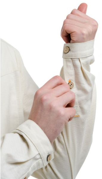 - Фиксация подвернутых рукавов. Если стало жарко, или тебе захотелось изменить образ, можно подвернуть рукава (фиксируются на пуговицу).