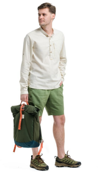 - Натуральный материал с содержанием конопли и переработанным полиэстером. Рубашка стала более компактной и легкой, быстро сохнет.