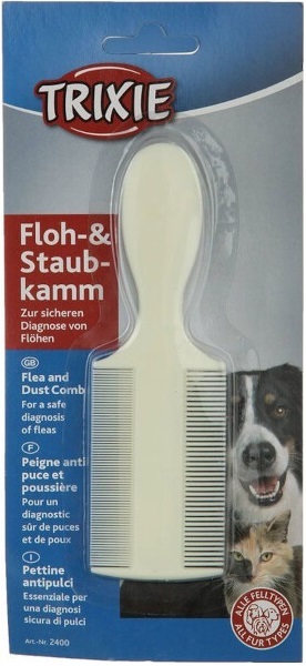 - Расческа для собак и кошек Trixie для поиска блох и вшей двухсторонняя пластиковая 14см